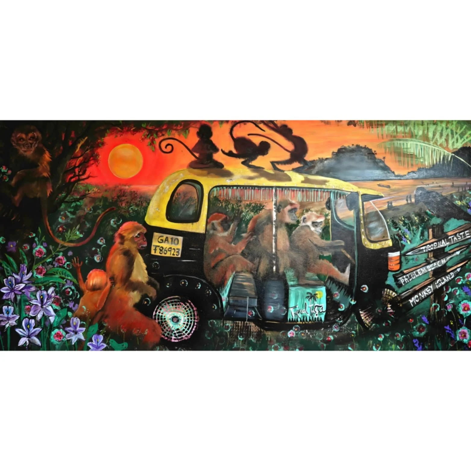 Goa Mural: The year began with a trip to Palolem Beach in South Goa, where I created a detailed mural for a restaurant called Tropical Taste. This complex piece is full of symbolism and is now available as both original artwork and prints in my new online shop.